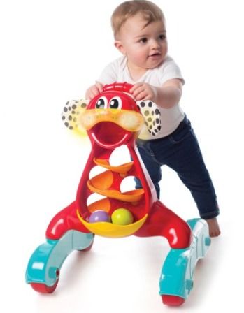 - Pegangan besar yang mudah digenggam akan menopang bayi saat mereka menarik dirinya ke atas dan mendorong. Alat bantu jalan yang menyenangkan ini juga memiliki fitur musik & lampu tambahan untuk mendorong pembelajaran auditori dan visual untuk bayi Anda yang asyik