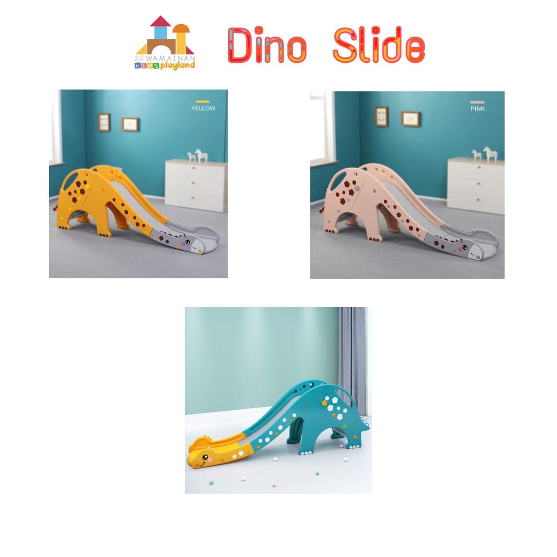 Single slide dengan karakter DIno ini cukup ramping dengan dimensi 160 cm x 60 cm x 80 cm, memiliki Perosotan landai sehingga tidk langsung menyentuh lantai, ringkes saat pengiriman
