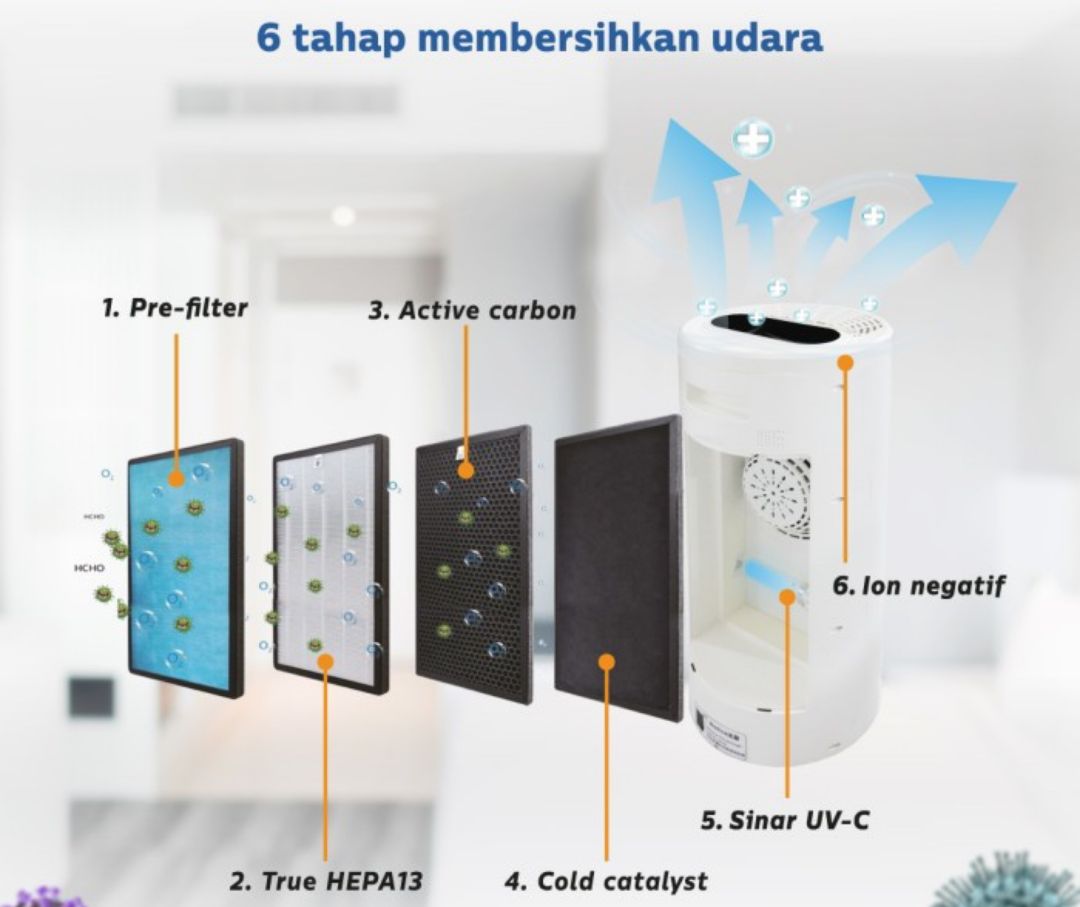 1. LEBIH LENGKAP - 6 tahap membersihkan udara (True HEPA13 filter, karbon aktif, UV-C, anion)