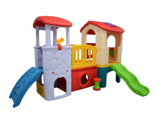 Taman bermain penuh warna ini lengkap dengan tangga panjat dan perosotan bergelombang. Rumah-rumah bermain yang dihubungkan oleh jembatan, di bawahnya untuk area petak umpet dan terowongan. Dilengkapi dengan setir, teleskop, meja dan bangku akan membuat waktu bermain lebih seru.