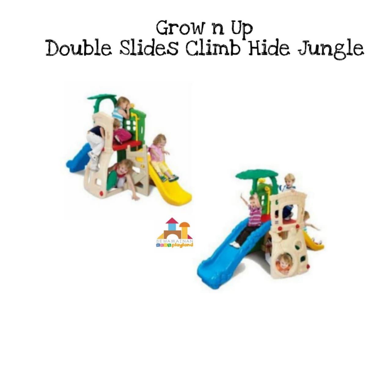 Platform dan slide besar dua tingkat untuk berbagai tantangan. Panjat dinding dan tangga dengan pegangan integral membantu balita saat memanjat. Perosotan double terbesar ukuran 1,7 M (5-1 / 2 kaki) dan perosotan kecil sepanjang 76 cm (2-1 / 2 kaki) . Teleskop dan mikrofon menambah kesenangan. Kanopi pohon berfungsi sebagai pelindung peneduh matahari.