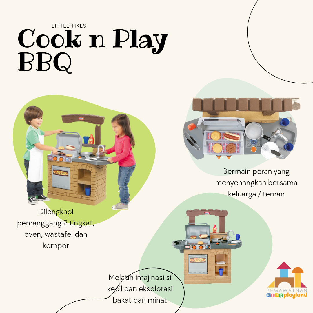Dapur bermain tradisional mendapat sentuhan baru sebagai pemanggang mainan outdoor - Cook 'n Play Outdoor BBQ! Anak-anak dapat memasak sendiri - cara yang bagus untuk mengembangkan keterampilan sosial dan berbagi dalam format permainan yang aktif. Set makanan bermain termasuk hamburger, hot dog, dan peralatan panggangan. Imajinasi akan tumbuh dengan BBQ yang diisi fitur ini!