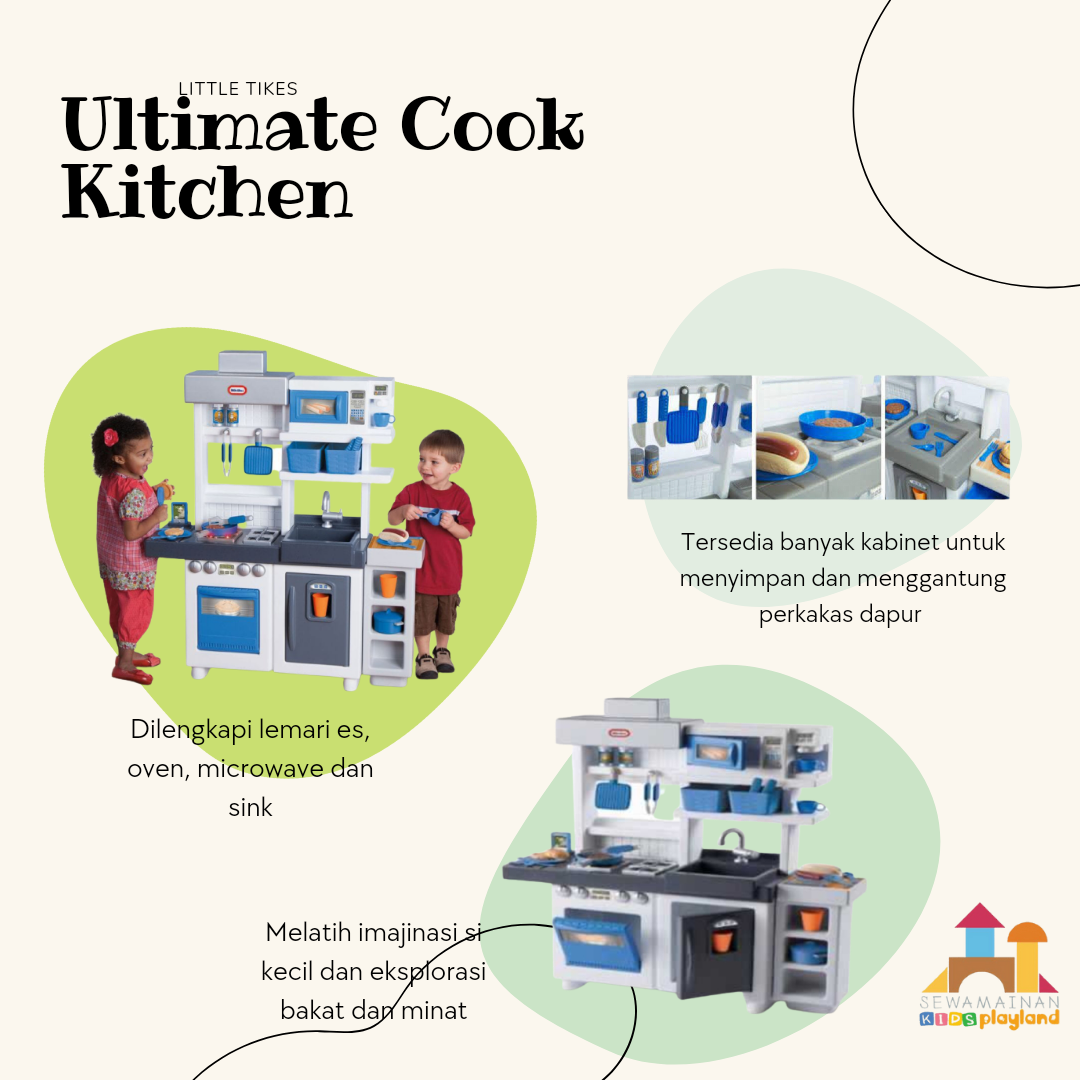 The Little Tikes Ultimate Cook Kitchen penuh dengan fitur role-play di mana anak-anak bisa menjadi seperti ibu atau ayah! Banyak ruang penyimpanan, termasuk rak cetakan untuk penyimpanan aksesori.