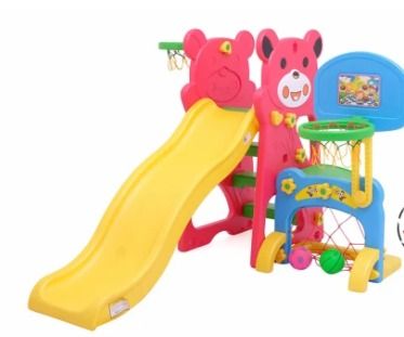 Labeille Panda Slide with Football & Basketball hadir dengan desain khusus Panda lucu, bahan plastik tahan lama & kokoh, tangga anti selip, perosotan lebih lebar dan bergelombang untuk meluncur lebih aman.