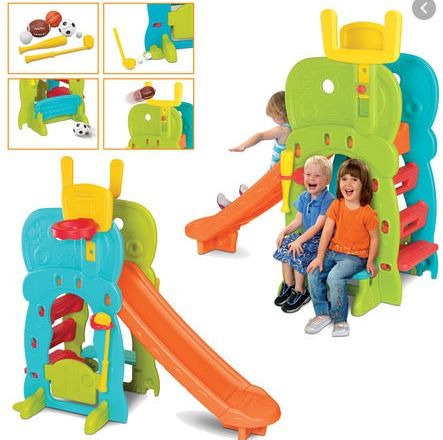 The Grow n Up 5-in-1 Activity Clubhouse adalah taman bermain yang bagus untuk pertunjukan slide anak-anak, menawarkan fitur lengkap di semua sisi. Dilengkapi dengan 5 jenis permainan olahraga; Permainan Bola Basket, Sepak Bola Amerika, Sepak Bola, T-Ball, dan Golf. Ada kursi lipat dan pintu kecil untuk bermain di bawah perosotan.