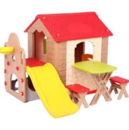 Itu dikemas dengan banyak fitur permainan yang menyenangkan dan realistis seperti; perosotan, panjat dan sembunyi, ring basket, juga dilengkapi dengan pintu kerja, jendela, meja piknik dan bangku, semuanya lengkap dalam satu set.