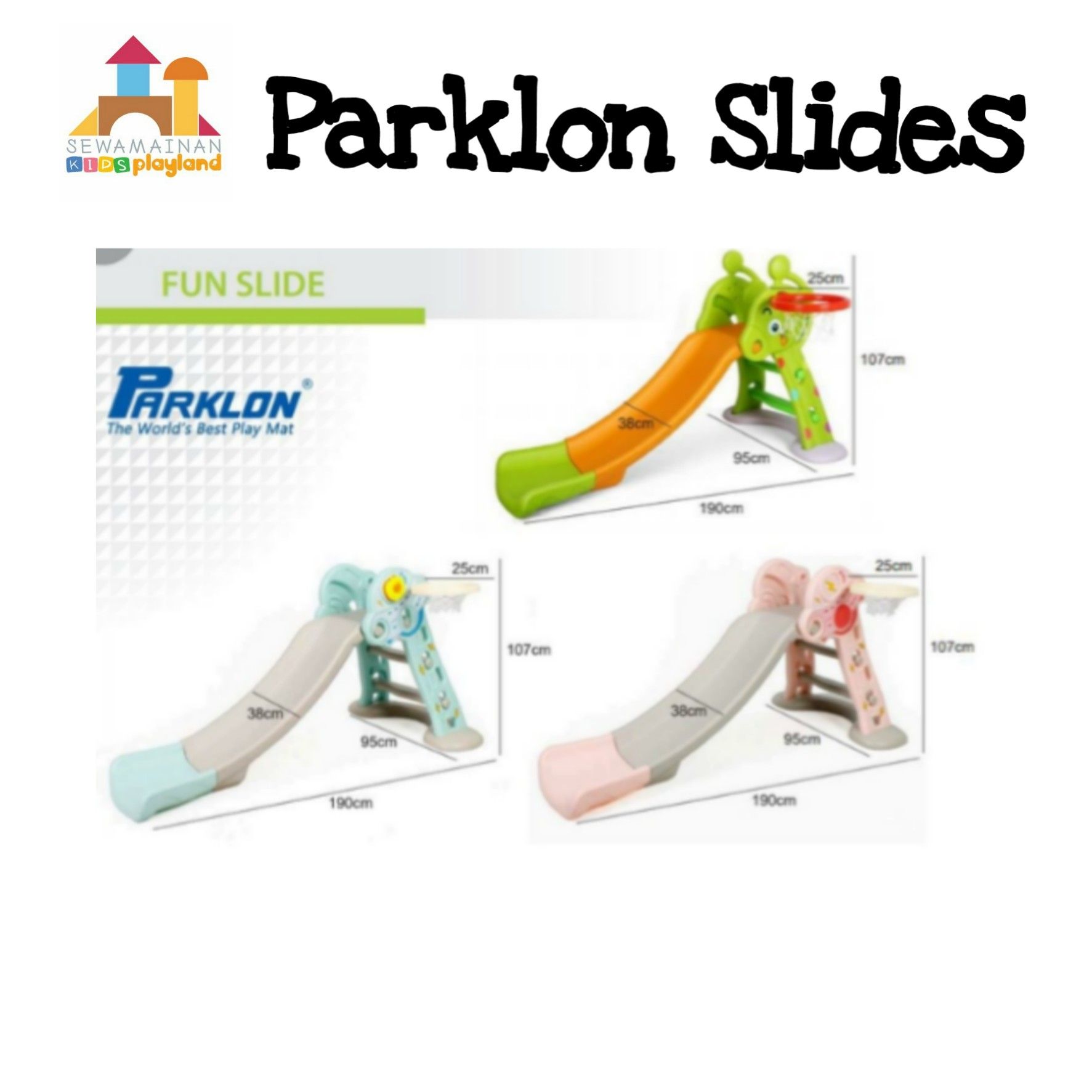 Parklon Folding slide, perosotan lucu dengan ring basket. Bahan dari plastik bebas racun. Perosotan yang tidak terlalu tinggi atau terlalu pendek cocok untuk anak kecil. Parklon Slide dapat digunakan di dalam ruangan. Dapat dilipat untuk penyimpanan kompak.