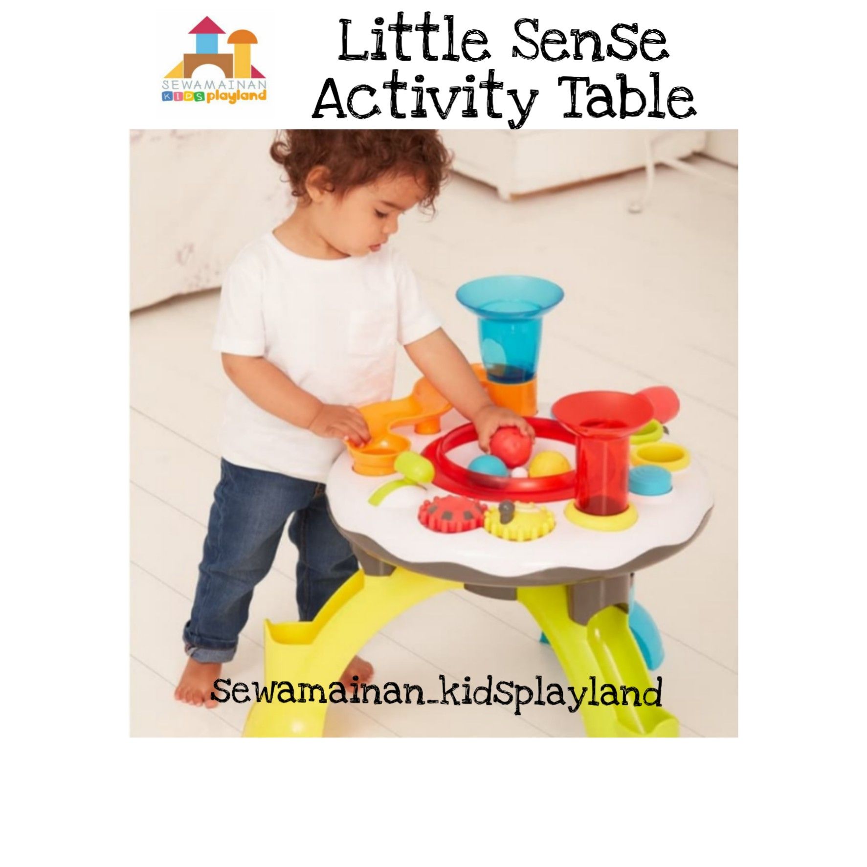 Ingin tahu lebih banyak? Meja aktivitas indra kecil adalah pusat mainan yang cerah dan penuh warna dengan sejumlah aktivitas untuk menyenangkan bayi Anda. Si kecil akan senang memutar roda penggerak, mendorong dan menarik tuas, serta menyaksikan bola warna-warni. Lampu berkedip dan suara lucu membuatnya lebih menyenangkan. Set termasuk empat bola dan palu mini untuk menekan bola melalui lubang. Memainkan permainan di meja aktivitas cahaya dan suara membantu bayi Anda belajar berdiri , mendapatkan kepercayaan diri pada keseimbangan mereka, dan melihat bola meluncur ke bawah memberi mereka banyak latihan untuk membungkuk dan berdiri lagi . Belajar memutar kenop, menarik tuas, dan mengetuk bola dengan palu memungkinkan bayi Anda menemukan sebab dan akibat, dan membantu mengembangkan keterampilan motorik halus mereka.