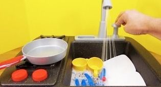 Perakitannya mudah dan tidak membutuhkan selang air, cukup isi air pada wadah penampung lalu tekan pompa dan air sungguhan keluar dari kran! Wow seru banget kan. Main masak-masakan benar-benar semakin menyenangkan dengan fitur realistic menyerupai bentuk aslinya bak cuci piring. Bentuknya yang ringkas sehingga mudah dibawa-badan dapat dimainkan dimana saja. Set mainan sudah termasuk aneka assesori memasak, piring juga cangkir.