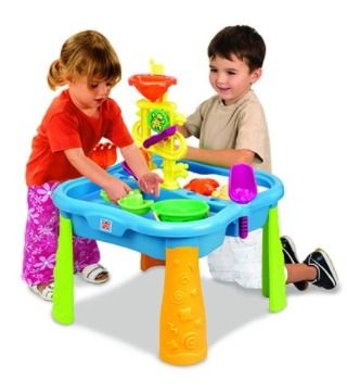 Permainan pasir dan air yang dilengkapi oleh sekop, perahu kecil, dan karakter bintang laut